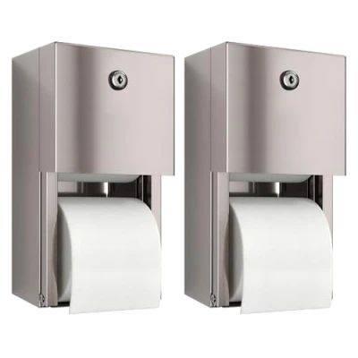 Heavy Duty - Made of High Quality Stainless Steel, each commercial toilet paper holder is built to last and can handle high-traffic bathrooms 2 Roll Capacity - Each double toilet paper roll dispenser requires less frequent refills which saves you time. The unique design automatically drops the second roll in place when the first roll is low Locking - Easy access for you/Prevent tampering by others. This simple-to-operate lock helps keep things secure. Use the included key to provide access on your terms and by the people you want. Easy to Clean -Save time/effort with stainless steel. Cleans in just a few swipes. A Great Choice for bathrooms Timeless Classic Design -Elegant and Stylish, each commercial toilet paper dispenser is a great addition to any bathroom. It measures 5-5/8 D x 6 W x 12 H and is easily mounted to any wall surface.