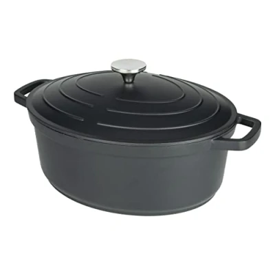 Commichef XO 632BK 32cm Cast Aluminium Oval Casserole Dish, Suitable for Oven and All Types of Hob, Perfect Stews Casseroles, Black