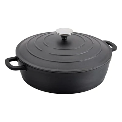Commichef XR L28BK 28cm Cast Aluminium Shallow Casserole Dish, Suitable for Oven and All Types of Hob, Perfect Stews Casseroles, Black