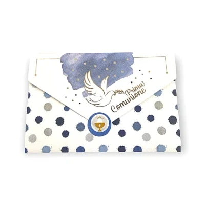 Communion Card for Child with Label Close Envelope, 11 x 16 cm (Blue Dove)