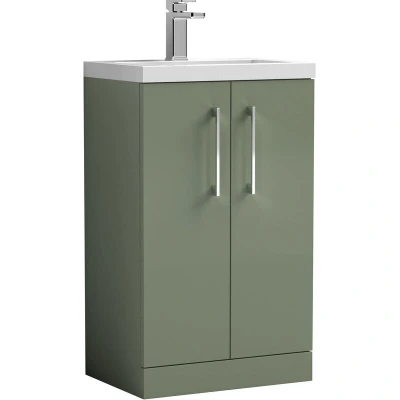 Compact Floor Standing 2 Door Vanity Basin Unit with Polymarble 500mm Satin Green