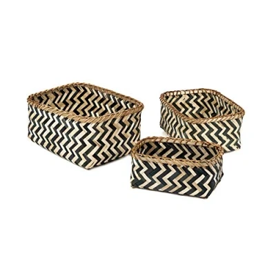 Compactor Bamboo Storage Basket, Hand Woven with Herringbone Patterns, Dark Wood, 30 x 23 H. 15 cm, RAN6434, Black/Natural Set of 3