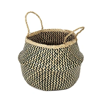 Stylish Storage Solution :Perfect for blankets, scarves, toys or as a plant pot cover Materials: Made from handwoven seagrass with unique geometric patterns and white paper Handcrafted in Vietnam: Each basket is uniquely crafted, ensuring individuality in shape and color Generous Size: Dimensions of 35x35x32 cm, providing ample space for your storage needs Collapsible Design: Soft and flexible, easy to store when not in use