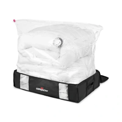 Save up to 75 percent space by compressing bulky items effortlessly with any vacuum Protect your belongings from dust, mites, and moisture with our durable vacuum box Easily identify your stored items with the convenient cover Large size (65x45x15.5 cm) perfect for storing seasonal clothing, beddings, and more Features a patented valve for more efficient and robust compression