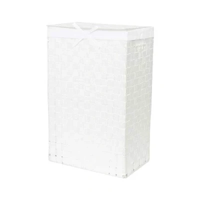 Compactor Rectangle Laundry Basket with Lid, Woven Washing Hamper for Storing Clothes and Linen in Bedrooms Bathrooms, Removable Liner Carry Handles, White, Stan Range