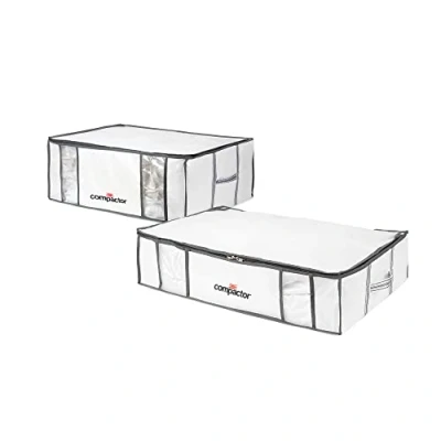 Compactor Set of 2 Space Saving Semi Rigid Under Bed Vacuum Storage Boxes, Size XXL (210L) and L (145L), 65 X 45 27 cm, 15.5 Life Range, White/Grey, RAN7683