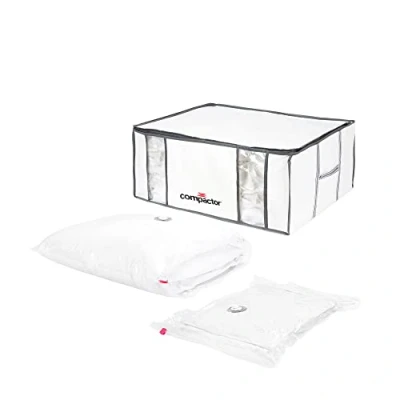 Compactor Set of 3 3D Semi Rigid Vacuum Boxes XXL and 2 Bags Included White/Transparent 50X65X26.5 cm