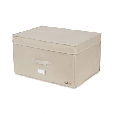 All-in-one vacuum storage box with lid that has a built in space saving vacuum bag to create up to 75% more space in your cupboards and wardrobes, Ideal for storing clothes, duvets and household linen over a long period of time, Keeps contents protected and in the same condition as they day they were stored, Capacity : 1 standard double duvet (240 x 220 cm) + 2 pillows Quick and easy to use : Simply remove the air from the internal vacuum pack bag using any type of vacuum cleaner (minimum 400W), The patented, non return valve ensures no air will re-enter the space saver bag when the vacuum nozzle is removed, Keep fully airtight by closing the double waterproof zipper using the slider provided with the duvet storage box, Secure the external rigid storage box with the removable lid - done! Practical: These clothes storage boxes are ready to use straight away with no assembly or complicated instructions, Re-usable again and again to save money and the environment, Outer vacuum storage box has internal straps to keep the contents secure and side handles making it easy to carry, Label holder allows you to clearly identify the contents of the vacuum packed bag inside, Rigid vacuum boxes can be used for storage or for transporting items Protects the contents: Vacuum packing is 100% airtight and will protect clothes and other textiles from dust, mites, damp and moisture, The vacuum storage bag is made from strong, durable polyethylene and nylon to ensure it keeps its shape while remaining flexible, The outer storage box is made from wipe clean, non-woven polypropylene which is reinforced with cardboard for strength and durability Contents: 1 x Compactor Rigid Vacuum Storage Bag including: Outer box with reinforced interior, Built-in space saver vacuum bag with non-return valve, Removable lid, Material: Outer box: 100% non-woven polypropylene, Reinforced with cardboard, Inner vacuum pack bag: Polyethylene and high strength nylon, Label holder: EVA, Dimensions: Size Large (150L), (L x W x H) : 55 x 40 x 30cm, Life 2.0 Range, Beige, RAN7117