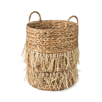 Stylish storage basket ideal for use on it's own or on shelves and in wardrobes, Unique design with jute tassels to add style to your rooms Store a range of items including books, clothes, toys and accessories, Makes an ideal decorative holder for real and artificial plants Features 2 handles for carrying, Made from water hyacinth and jute, Slight variations in shape and colour of the natural fibre Create instant extra storage for any room in the house, Use multiple baskets for co-ordinated storage Contents: 1 x Compactor Water Hyacinth and Jute Storage Baskets Dimensions: 30 x 30 x 15cm, Light Brown, RAN10514