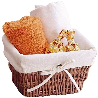 Stylish and practical rectangle shaped storage basket, Ideal for use on its own or on shelves and in wardrobes Store a range of items including books, accessories, beauty products, toys, letters and paperwork, Provides instant storage in any room in the house Rectangle shape provides plenty of storage space while the compact design is perfect for smaller spaces. Features a cotton and polyester mix interior lining to protect the contents which can be easily removed for washing Made from honey coloured wicker for a traditional basket finish, Strong and durable storage basket to be used over and over again Contents: 1 x Compactor Wicker Storage Basket, Material: Wicker, Cotton and Polyester, Dimensions: (W x D x H) 23 x 18.5 x 14cm, Brown/Cream, RAN3490