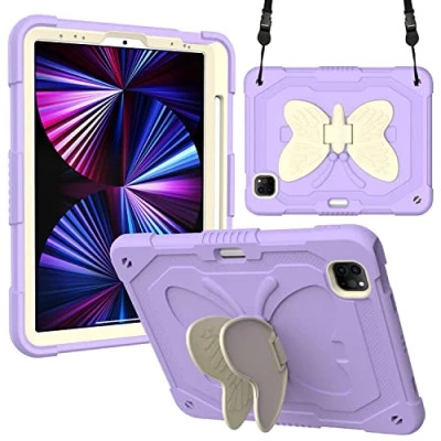 BUILT-IN PENCIL HOLDER AND BUTTERFLY HOLDER - Built-in iPad case pencil holder makes it easy to store and carry your Apple pencil. The vivid design of the butterfly stand frees your hands and makes your iPad unique. Adjust the best angle for watching videos, working and typing. (Apple pencil not included) DUAL LAYER PROTECTION: Drop tested iPad cases protect your iPad from any angle. Shock/Drop/Shock/Scratch Resistant Premium soft silicone rubber and hybrid hard PC + front hard PC bumper 2-in-1 design. Screen and camera protection: the extra raised lips and corners of the front hard frame provide excellent protection from drops and protect your screen and camera. Superior quality and colour design: precise cut-outs allow quick and easy access to all ports, buttons and sensors, etc. This dazzling iPad case is the perfect gift for women, girls and children. 3D Raised Design:The wings of the butterfly cover can be used as a stand so that children can free their hands while watching cartoons, reading, learning or making video calls. Easy to install and remove.