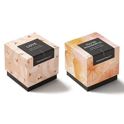 INSPIRATIONAL CARDS: ThoughtFulls pop-open cards feature contemporary designs on the outside and surprise messages tucked inside, which are sure to brighten spirits and capture hearts. SPREAD JOY: Included in this ThoughtFulls Pack: 1 box of Love, 1 box of You're Wonderful EXAMPLE QUOTES: "All you need is love.” —John Lennon / “To be beautiful means to be yourself.”—Thich Nhat Hanh FEATURES: Each box includes 30 pop-open cards, each card has a different inspiring quotation inside, and the back of each card includes space to write a personal note. DIMENSIONS: Cards: 2.25"W x 2.25"H, Box: 2.5"W x 2.5"H x 2.5"D