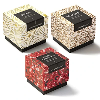 INSPIRATIONAL CARDS: ThoughtFulls pop-open cards feature contemporary designs on the outside and surprise messages tucked inside, which are sure to brighten spirits and capture hearts. SPREAD JOY: Included in this pack are 3 boxes of ThoughtFulls - 1 box of Merry Christmas, 1 box of Believe, and 1 box of Shine. Each box features 30 cards, each with a unique quote to welcome the season's joy. Tuck these ThoughtFulls into holiday cards, use them as gift tags, or open them yourself to reconnect with joy. EXAMPLE QUOTES: “These are the days of miracle and wonder.” — Paul Simon / “Keep some room in your heart for the unimaginable.” — Mary Oliver / “Let nothing dim the light that shines from within.” —Maya Angelou FEATURES: Each pack includes 3 boxes of ThoughtFulls, 30 pop-open cards per box, 90 total. Each card has a different inspiring quotation inside, and the back includes space to write a personal note. SIZE: ThoughtFulls pop-open cards are small and compact, only 2.25" x 2.25"; perfect for easy sharing, using as a gift tag, or tucking away for a surprise.