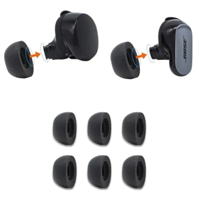 VERY COMFORTABLE: eliminate ear pain and discomfort caused by silicone tips; foam tips are made for all-day comfort; work all day, play all night with body heat activated memory foam that molds to your ear and molds to your ear for a fully custom fit for hours of comfortable listening SECURE FIT FOR YOUR EAR Never let your earbuds fall out again. COMPLY memory foam earplugs are designed for a secure in-ear fit and provide a better grip than silicone. Whether you're working out, working, sleeping, or going about your day, our replacement tips prevent your earbuds from falling out so they can take them anywhere to do anything Large, vivid sounds: block unwanted noise for an exceptional audio experience. Increase your noise at lower volumes and protect hearing. Your favorite devices work better than ever with our replacement tips COMPATIBILITY Our memory foam tips are made for Bose QuietComfort II and Bose QuietComfort Ultra and provide a comfortable and secure in-ear fit; won't interfere with charging CARE INSTRUCTIONS To keep your tips in top shape, gently clean them with warm water and a soft cloth. Avoid alcohol-based cleaners or lotions as they can break down the material.