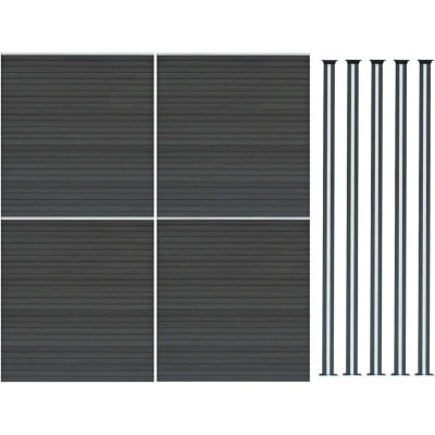 General description Transform your outdoor area with this beautifully designed composite fencing set, offering a perfect harmony of style, strength, and innovation. Supplied with 4 high-quality 6ft fence panels and 5 sturdy aluminium posts, this fencing solution is an excellent choice for defining garden boundaries or upgrading property exteriors. Crafted from 9 interlocking WPC (wood plastic composite) slats per panel, this fence is designed to slot together effortlessly, forming a strong, unified structure that’s highly durable and low maintenance. Once assembled, the barrier stands at an impressive 185cm high by 699cm wide, offering both privacy and a bold, contemporary presence in the garden. What sets this panel apart is its versatile double-sided design: one side showcases a solid wood grain effect, while the reverse features a modern, slatted finish. Both sides boast a sophisticated grey finish, capturing the beauty of timber without the need for regular upkeep. Technical