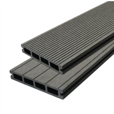 General description Clean lines, subtle texture, and a soft grey tone make these composite decking boards an effortlessly stylish choice for modern outdoor spaces. Whether you’re designing a quiet corner for relaxing or creating a smart, sociable area for entertaining, these boards provide a sleek, contemporary base that complements everything from minimalist garden furniture to lush planting schemes. Each board is crafted from robust WPC (wood-plastic composite), blending the authentic look and feel of wood with the resilience of a weather-resistant material. The dual-sided design offers a choice of two contemporary grooved finishes: one side features a fine ribbed profile with closely spaced grooves for a modern look and enhanced grip, while the reverse offers wider panel-style grooves that create a bold, architectural effect. Both sides provide a refined finish that adds a design-led touch to patios, balconies, or garden walkways. Technical specifications Colour: Grey Weight: 53.2