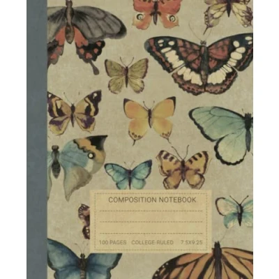 Composition Notebook: Beautiful Vintage Illustration of Butterflies Book For Notes. Perfect Gift Students and Teachers, Nature Insects Lovers