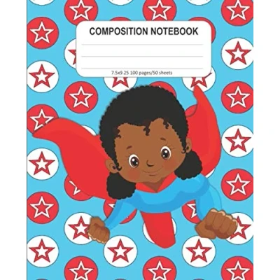 Composition Notebook: Black Superhero Wide Ruled Line Notebook, Girl School Notebook