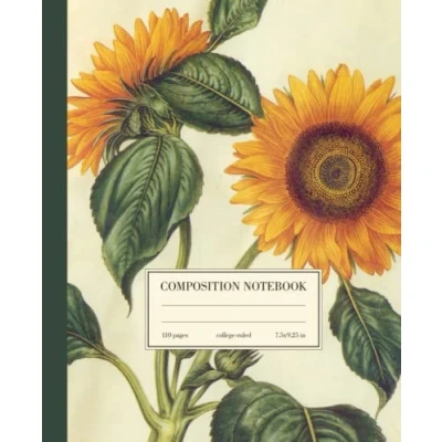 Composition Notebook College Ruled: Sunflower Vintage Botanical Illustration Floral Aesthetic Journal For Girls, Teens, Women Wide Lined