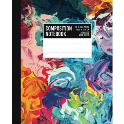 Composition Notebook: Colorful Acrylic Paint Creative Art Design Wide Ruled Lined Paper Journal 7.5" x 9.25" 110 Pages (Wide Notebooks)