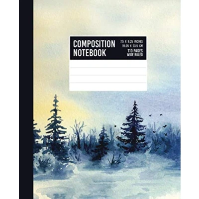 Composition Notebook: Snowy Winter Watercolor Landscape Wide Ruled Lined Paper Journal 7.5" x 9.25" 110 Pages (Wide Notebooks)