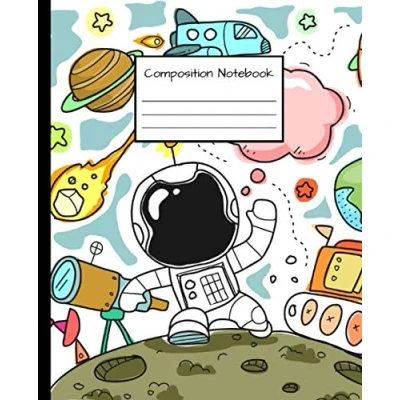 Composition Notebook: Trendy Wide Ruled Journal & Notebook for Students, Kids Teens Pretty Blank Lined School College Writing and Notes Spaceman Cosmonaut illustation
