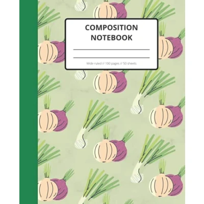 Composition Notebook: Wide Ruled Green Marble Notebook With Onions, Spring Shallots, Chives; Lined Onion for Veggie Lovers 100 pages