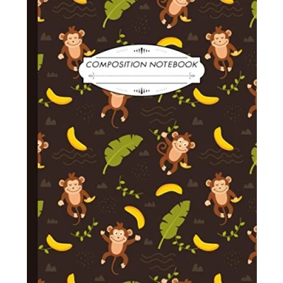 Composition Notebook: Wide Ruled Lined Paper Notebook Journal Cute Monkey and Banana Pattern Workbook for Girls Kids Teens Students Back to School Home College Writing Notes