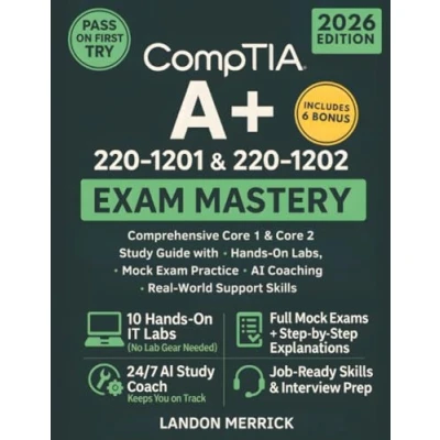 CompTIA A+ 220 1201 & 1202 Exam Mastery: Comprehensive Core 1 2 Study Guide with Hands On Labs, Mock Practice, AI Coaching, and Real World Support Skills