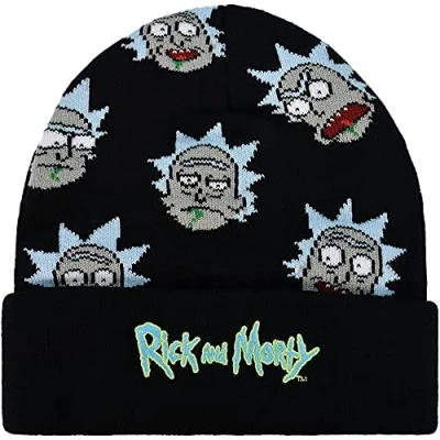 RICK AND MORTY DESIGN: Black knit cuff beanie with an embroidered logo and Rick Sanchez head graphic ONE SIZE FITS MOST: Our beanies feature a stretchy knit construction which provides a comfortable, flexible fit for most adult men and women's head sizes WARM AND LIGHTWEIGHT: Skull cap beanie is made with soft, durable knitted acrylic fabric which helps keep you cozy during cold or chilly weather OFFICIALLY LICENSED: Our beanie hats are officially licensed Warner Bros. merchandise, ensuring you are receiving durable Adult Swim winter clothing apparel and cold weather accessories CARE INSTRUCTIONS: Our beanie caps are to be hand washed cold, lay flat to dry; do not iron