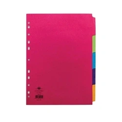 The Concord Bright Subject Divider A4 5 Part features durable, brightly coloured board dividers with write-on tabs, ideal for organising documents in five sections. Suitable for everyday use, these dividers fit standard binders and provide a vibrant, customisable filing solution for home, school, or office.