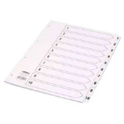 1-10 index A4 Contents page for cross reference White board with mylar reinforced tabs and punch holes for long lasting durability Ideal for use in all commercial and professional environments Size A4