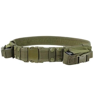 Heavy duty external webbing.Use, hang around thigh holster, magazine pockets, gas mask kits and other devices. Suitable for law enforcement and military use.Can be used together with Condor battle belt. 5 cm wide with large quick release button, velcro surface inside and 4 nylon loops. 2 detachable pistol magazine pockets included. -Adjustable up to 44 inches waist weight:330 g.