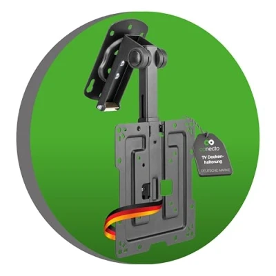 Height-adjustable TV ceiling mount for flexible installations: the conecto ceiling mount allows you to mount TVs with a screen diagonal of 19 to 43 inches. With a load capacity of max. 20 kg and VESA compatibility of 75x75, 100x100, 100x200, 200x100 and 200x200, this mount is ideal for all standard LCD, LED, OLED, QLED, curved and plasma televisions. Swivelling and folding design for maximum flexibility: The mount rotates 90° and tilts up to 90° so that the TV can be optimally positioned. The folding function is particularly suitable for installations on sloping ceilings or hard-to-reach areas. Versatile application for different rooms: this TV ceiling mount is not only ideal for the living room, but also for offices, conference rooms, kitchens or bedrooms where space is limited. Thanks to the ceiling mounting, the TV can be safely hung and placed in the optimal position. Robust and stable construction for a secure hold: made of high-quality steel, the conecto TV mount offers a maximum load capacity of up to 20 kg. This ensures that TVs can be mounted securely and stably. Easy installation: Thanks to the thoughtful design, the mount can be quickly and easily mounted on the ceiling. The step-by-step instructions and included mounting hardware make installation effortless.
