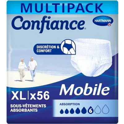 ANTI-LEAK ABSORBENT SLIPS: The absorbent briefs for men and women from the Confiance Mobile range are recommended for moderate to heavy bladder leakage, day or night, thanks to 3 levels of absorption DISCRETION AND COMFORT: As comfortable as they are discreet, these urinary protectors neutralise bad odours and are pleasant to wear thanks to their soft and supple material SAFETY AGAINST URINARY LEAKS: These briefs have an absorbent pad and leak-proof side barriers, to protect your clothes and keep the skin dry for several hours, whatever your activity Range developed to protect the skin: dermatologically tested, our protectors have a pH neutral to the skin and an external impermeable veil LEADER IN HEALTH PROFESSIONALS: Offering a wide range of bladder protection for all needs, the Confiance brand is the leader in pharmacy