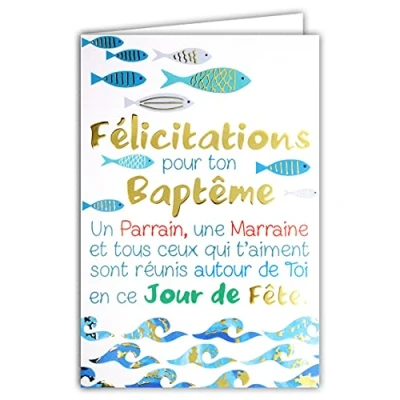 Congratulations Card for Your Christening Godfather Godmother Day of The Festive Fish Blue Gold Made in France