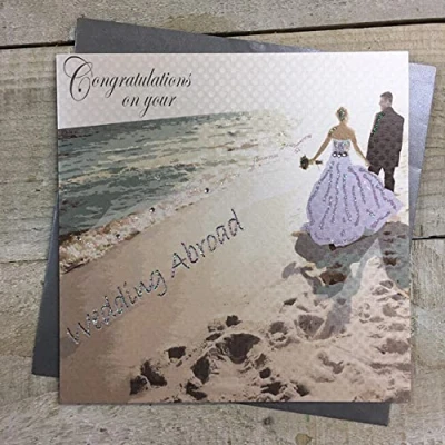 Congratulations on your wedding Abroad handmade Card Bride & Groom Beach