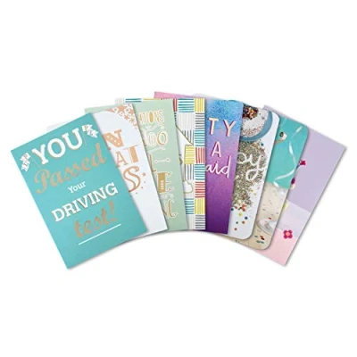 Make sure you've got a card to celebrate all those special moments in life with this variety pack of cards from Hallmark's 'Simply for you' collection. All cards are printed on FSC certified board with some featuring die-cut elements and foil and glitter highlights. All cards come complete with co-ordinating plain white or coloured envelopes. All cards contain simple, occasion appropriate messages. All Cards Measure Within Standard UK 'Letter' Size Limits