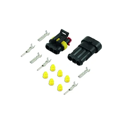 Conforms to ROHS Contains - 1 Male Connector, 1 Female Connector 3 Male terminals and 3 Female terminals 6 x Weather Seals 14pc