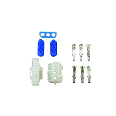 Kit contains - 3 pin connectors, natural 3 pin male connector (OEM 1-480701-0), 3 pin female connector (OEM 1-480700-0), 3 x male non insulated terminals 37518 (OEM 350552-1), 3 x female non insulated terminals 37519 (OEM 350551-1), 2 x weatherproof wire seals and 1 weatherproof interface seal Supplied in a blister
