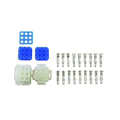Kit contains - 9 pin connectors, natural 9 pin male connector (OEM 1-480707-0), 9 pin female connector (1-480706-0), 9 x male non insulated terminals 37518 (OEM 350552-1), 9 x female non insulated terminals 37519 (OEM 350551-1), 2 x weatherproof wire seals and 1 weatherproof interface seal Supplied in a blister