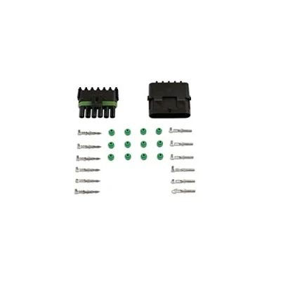 AmazonDelphi Weatherproof Connectors Contains - 1 x Male 6 Pin Connector, 1 x Female 6 Pin Connector, 6 x male terminals, 6 x female terminals and 12 x green seals Supplied in a blister pack 26pc