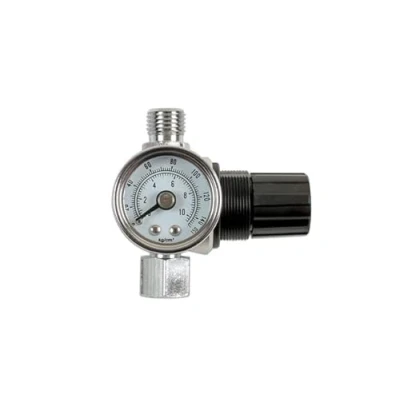 Forged aluminium housing, making the gauge a lightweight addition to a spray gun and airline Gauge range: 0 - 150psi (0 - 10 bar) 1/4 Inch fittings Max working pressure: 120psi Swivel air outlet
