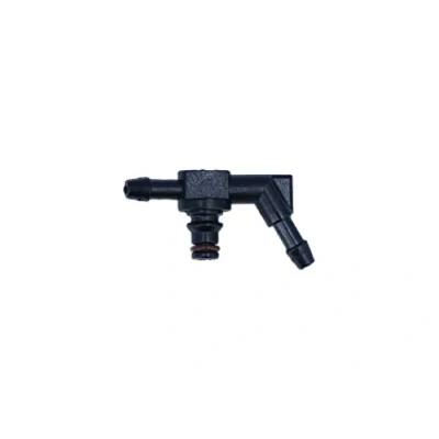Common rail offset 2 way leak off connector. Applications: Peugeot 2.0 HDI engines, including Peugeot Partner. For Bosch injectors. 5pc