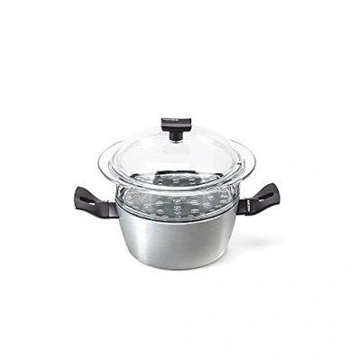 Connection base is the first series of Moneta Cookware that thanks to the QR code technology integrated in the coating of the pot allow you to access a series of recipes of the silver spoon according to your food tastes and cooking styles Two Italian historical brands; coin, 140 years of history, and the silver spoon, since 1950 the recipe book symbol of Italian culinary culture, come together for an innovative project The heart of the connection base experience is the “culinary personality test”; once connected via the QR code, few simple questions about your cooking habits will create your culinary profile on the basis of which the recipes of the silver spoon closest to your tastes and cooking styles will be selected Steamer coin 20 cm connection base, consisting of 20 cm casserole, steam insert and glass lid, with innovative protection base coating, which is non-stick and resistance 100% made in Italy; 5 years; no PFOA, no nickel and heavy metals, no Bisphenol a