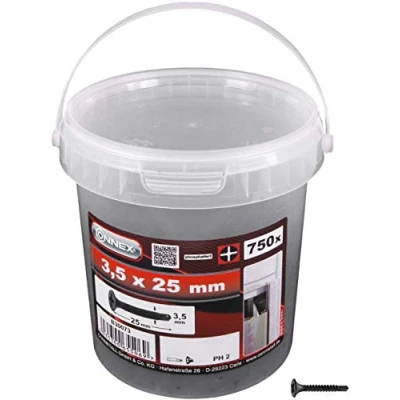 CONNEX B30073 Dry Wall Screws w Drilling pin, Black, 3,5 x 25 mm (750 Stück)