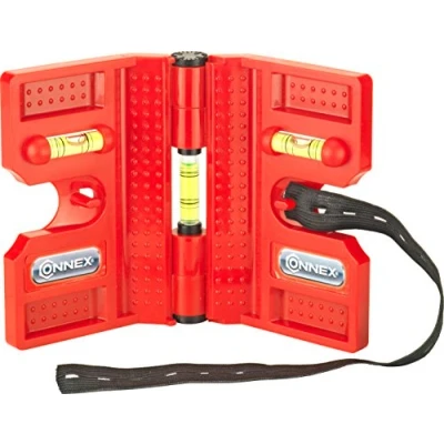 Four strong magnets for metal surfaces Width: 13,5 cm Three spirit levels (two horizontal, one vertical)