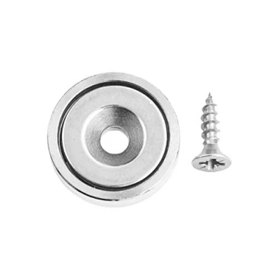 High strength Neodymium Disc Magnet with round hole 20.0 x 6.0 x 4.5 mm Strong magnetic force 10.5 kg Mounting screws included stainless steel a2