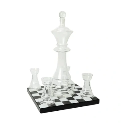 Amazon100% Foodsafe Handmade Queen Chess Piece Shaped Glass Decanter with Stopper, Glasses and Chessboard Base Holding Around a 750ml this Set is Completed by Four 60ml Rook Shaped Glasses and Wooden Chessboard Base Decanter, Stopper and Tumblers are Made from 100% Foodsafe High Quality Glass with Composite Wood Base An Ideal Gift for Chess Fans and Whisky Lovers and with the Wooden Base this Set Makes a Striking Centrepiece Decanter Measures Around 27 cm by 9 cm by 9 cm | Set on Base Measures Around 28.5 cm by 35 cm by 35 cm, Weight: 3.086471668 Pounds, Manufacturer: The Source Wholesale