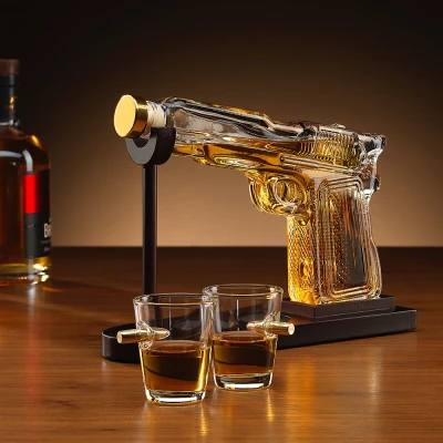 Connoisseur Creations Glass Pistol Gun Decanter and Bullet in Shot Glasses